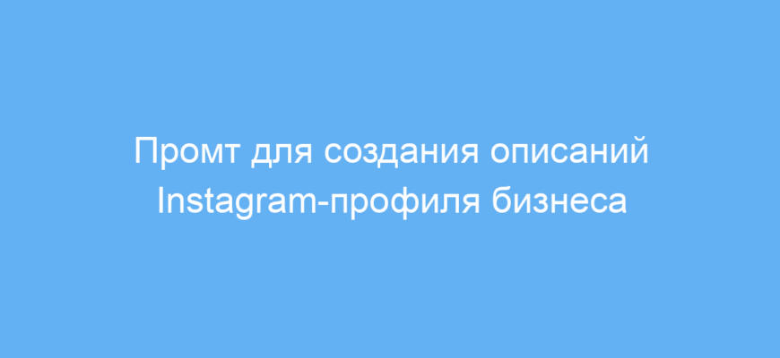 Этот промт предназначен для предпринимателей, маркетологов и специалистов по социальным сетям, которым нужно быстро и эффективно создавать профессиональные описания для Instagram-профиля бизнеса. В современном digital-мире первое впечатление о компании часто формируется именно с помощью краткого описания в соцсетях. Правильное описание должно быть ёмким, запоминающимся и убедительным, чтобы привлечь внимание потенциальных клиентов и увеличить вовлечённость.