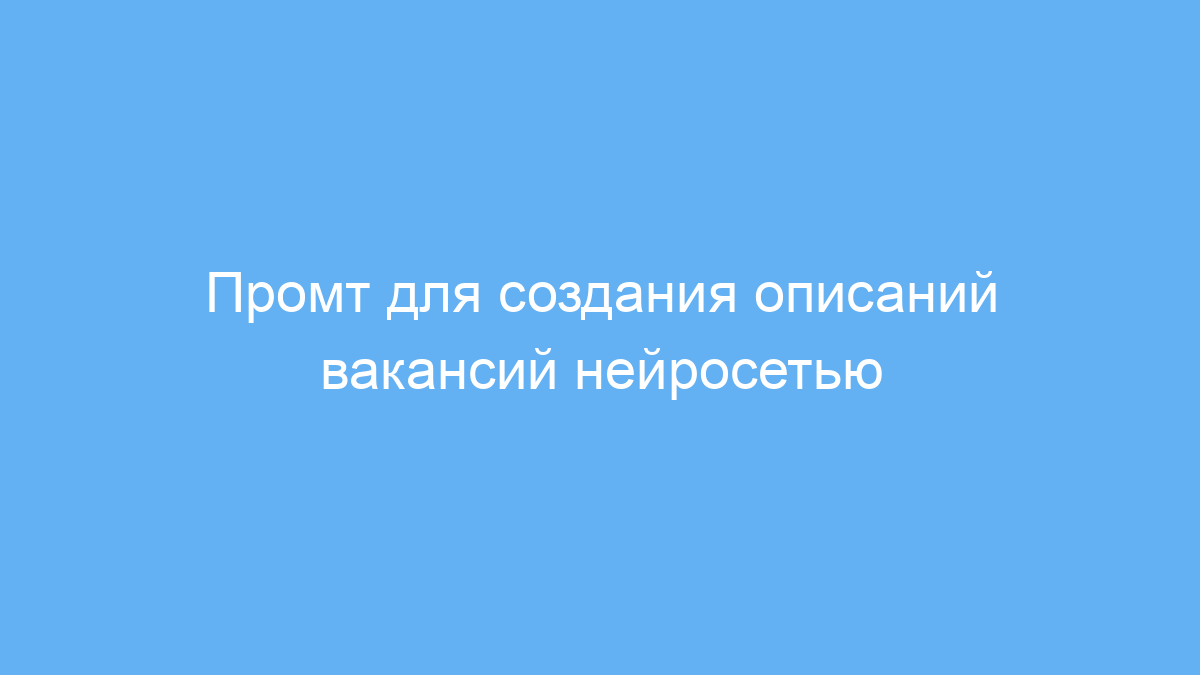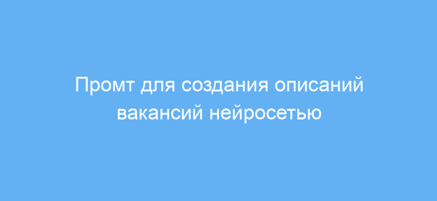 Промт позволяет на основе указанных параметров — должности, необходимых навыков, требований к кандидату, условий работы и особенностей компании — сформировать грамотное описание вакансии. Это упрощает подбор персонала и повышает интерес соискателей к вакансии. Таким образом, промт экономит время и делает процесс создания вакансий более эффективным.