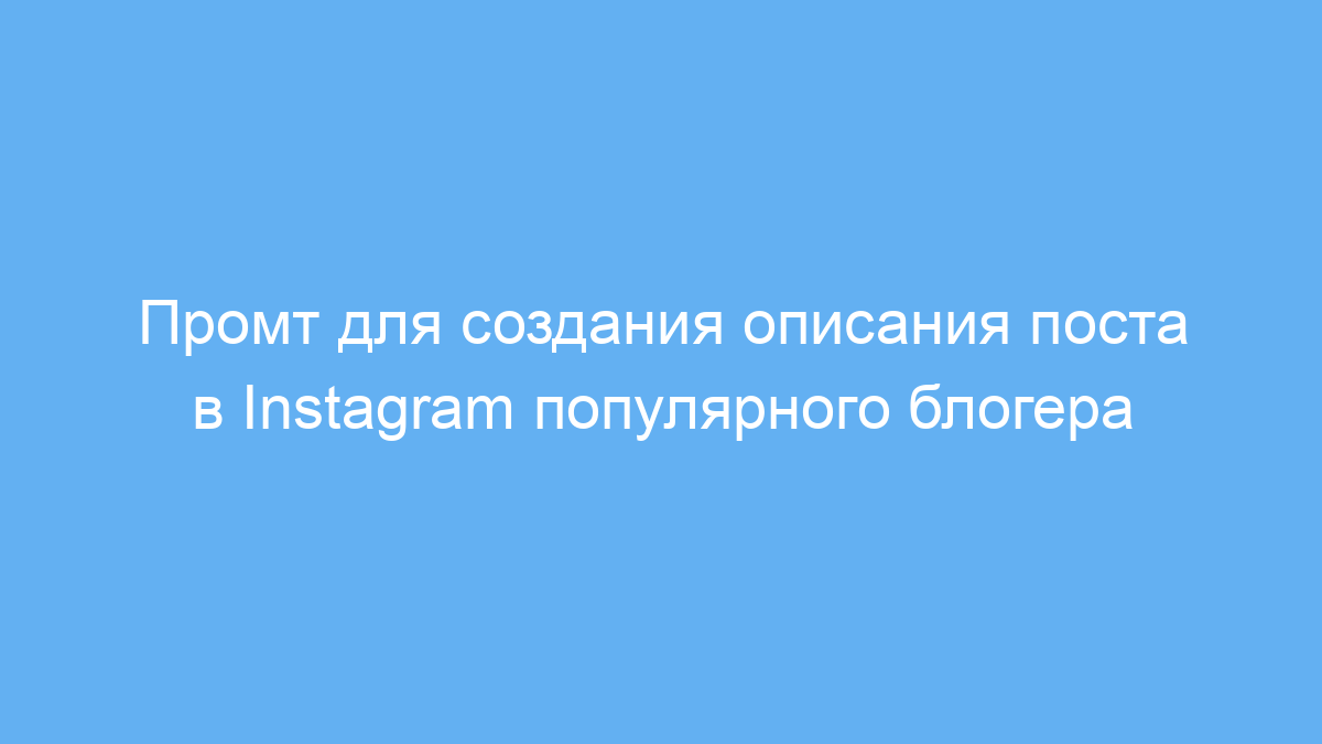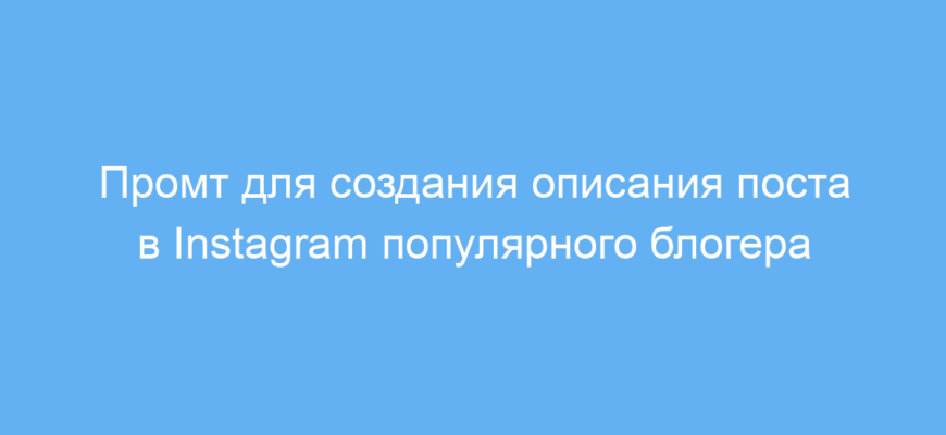 Этот промт предназначен для тех, кто хочет быстро и качественно создавать привлекательные описания для постов в Instagram. Он поможет блогерам, маркетологам, SMM-специалистам и всем, кто ведёт страницы в социальных сетях, сэкономить время и повысить вовлечённость аудитории.