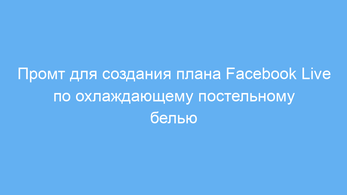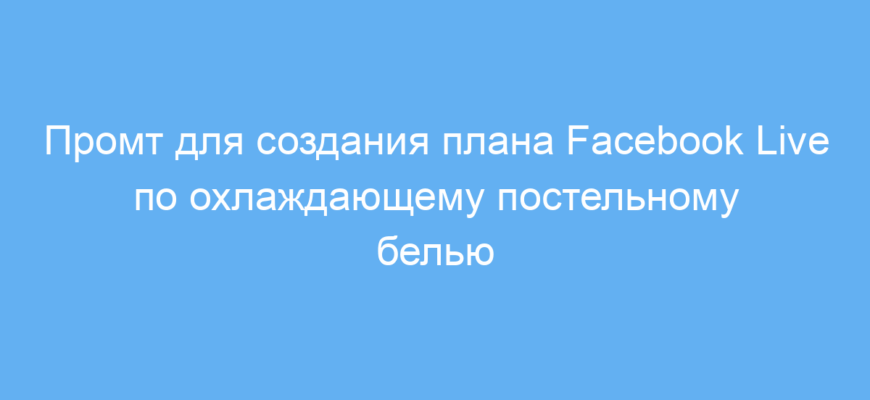 Этот промт предназначен для маркетологов, менеджеров по продукту, специалистов по контенту и владельцев брендов, которые планируют провести прямую трансляцию Facebook Live на тему охлаждающего постельного белья. Использование промта помогает быстро и эффективно подготовить структурированный план мероприятия — список тем для обсуждения, предложения по приглашённым спикерам и чёткий призыв к действию.