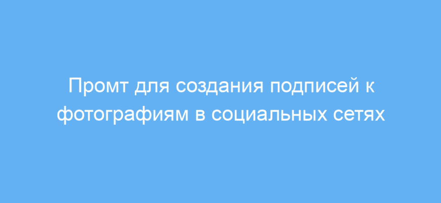 Использование данного промта позволит быстро создавать привлекательные, разнообразные и актуальные подписи к фотографиям, что экономит время и повышает качество контента в социальных сетях.