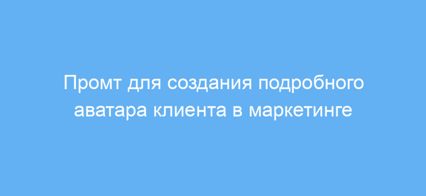 Этот промт предназначен для маркетологов, предпринимателей и специалистов по рекламе, которым важно чётко понимать целевую аудиторию. Создание аватара клиента — ключевой этап маркетингового планирования, помогающий точнее подбирать рекламные сообщения и улучшать продукт под нужды покупателей.
