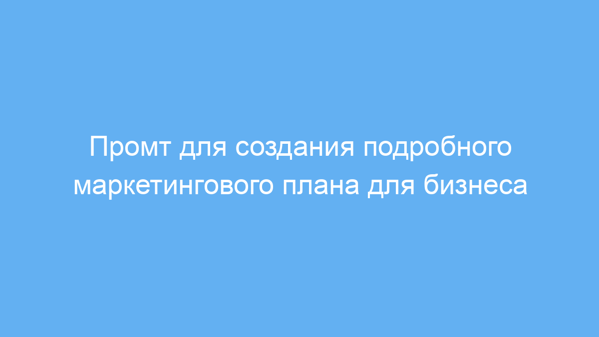Используйте промт, предварительно подготовив актуальные данные о вашем бизнесе: описание, цели, целевую аудиторию, конкурентное окружение. Без актуальной информации план будет менее точным.