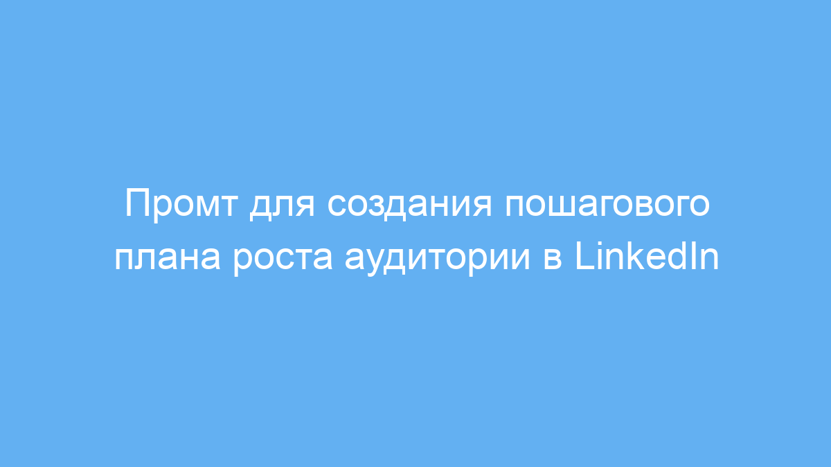 Промт можно адаптировать для разных целей продвижения в LinkedIn и получения разнообразных планов.