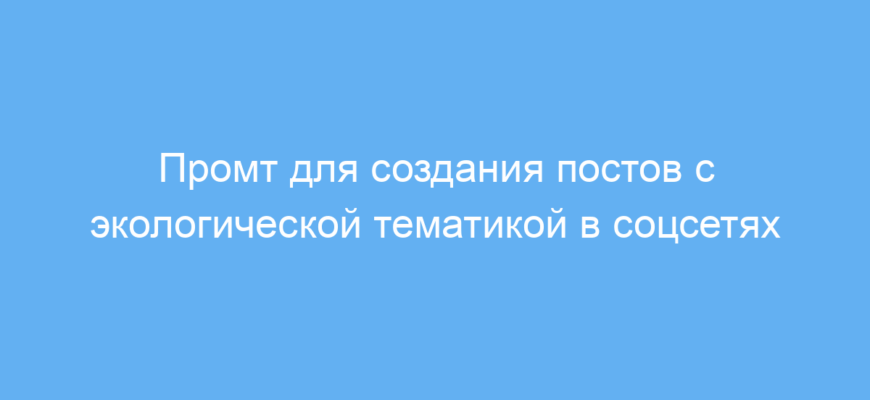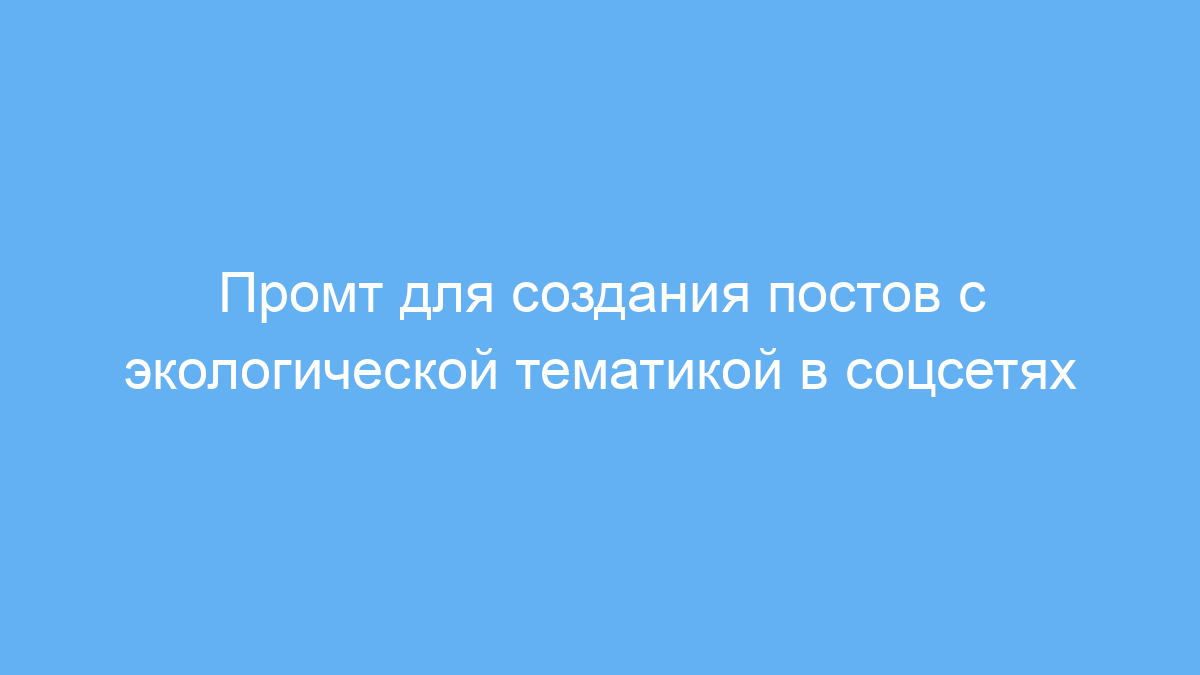 Этот промт создан для пользователей, которые хотят быстро и эффектно создавать посты на тему экологии, устойчивого развития, изменения климата и экообраза жизни. Он идеально подойдёт тем, кто ведёт социальные сети, блоги или участвует в продвижении экологических идей. Используя этот промт, вы сможете легко подготовить публикацию с интригующим текстом, подходящими ключевыми словами и ярким изображением, что повысит вовлечённость вашей аудитории и поможет привлечь внимание к важным проблемам.