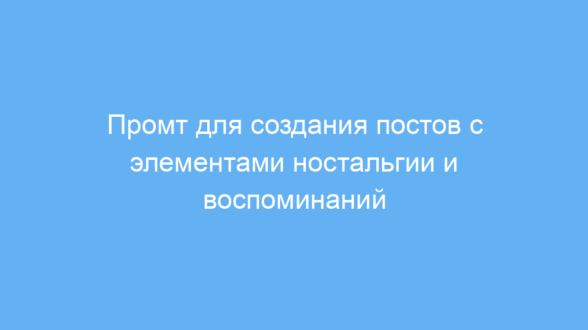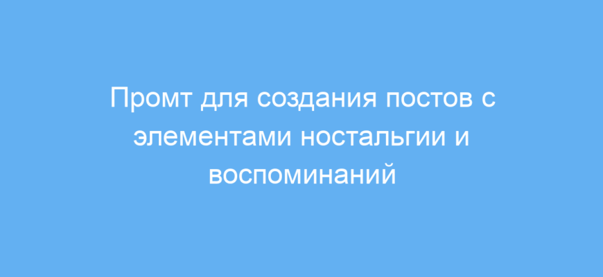 Этот промт создан для копирайтеров, маркетологов и контент-стратегов, которые хотят быстро генерировать идеи постов для социальных сетей или блогов. Особенно он полезен тем, кто работает с аудиториями, которые ценят эмоциональный отклик через ностальгию, воспоминания и важные события.