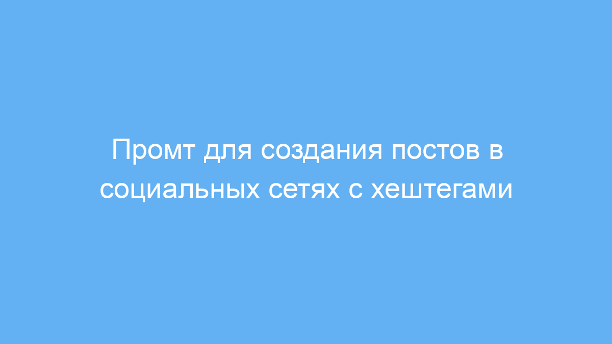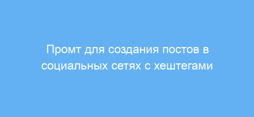 Использование этого промта значительно ускоряет процесс создания постов, делая их понятными и эффективными. Вам не нужно тратить много времени на придумывание слов и хештегов — нейросеть сделает это за вас быстро и качественно.