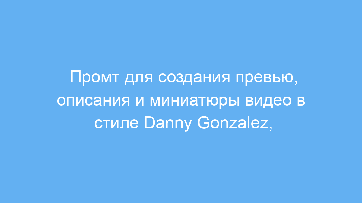 Проблема многих авторов в том, что они не знают, как создать продающий и запоминающийся контент для привлечения внимания аудитории. Этот промт решает ее, предлагая готовый набор элементов, которые основаны на проверенных принципах маркетинга и стилистике таких популярных ютуберов, как Danny Gonzalez, Ryan Trahan и MrBeast.