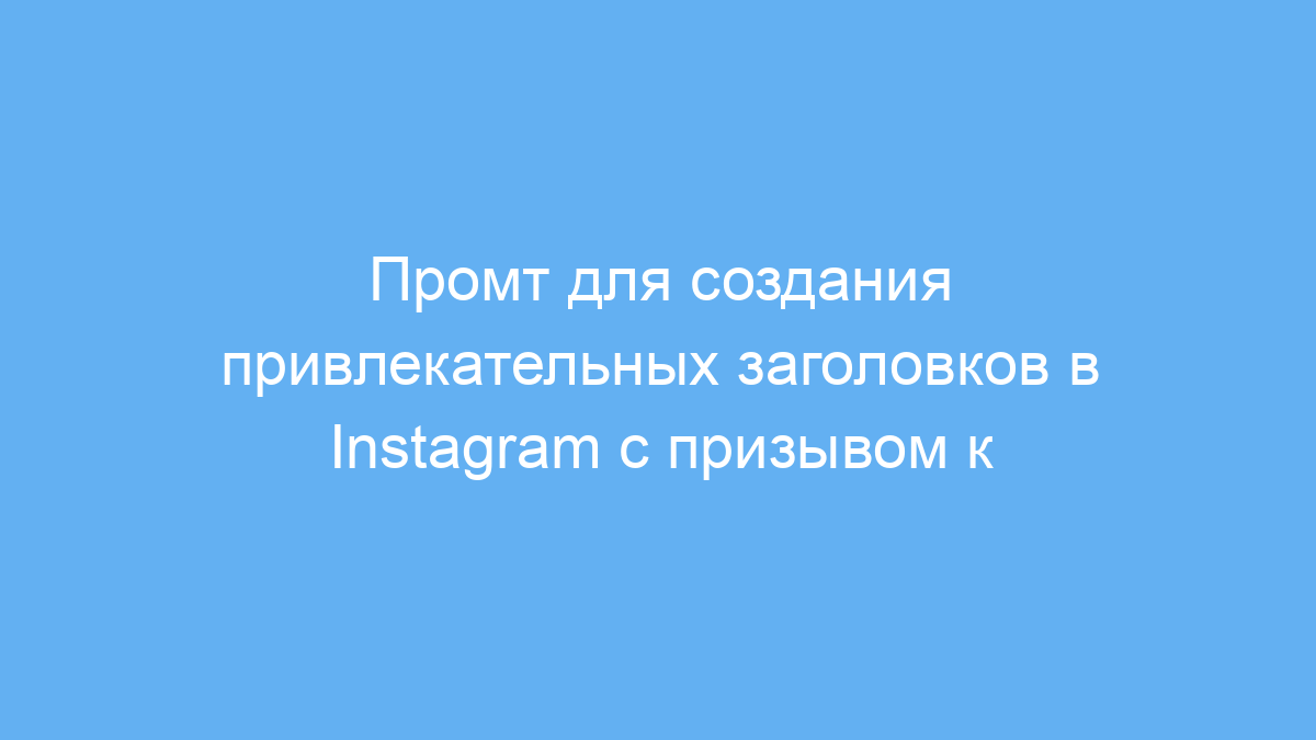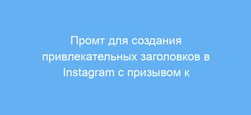 С помощью этого промта вы сможете за минуту создавать эффективные и цепляющие заголовки с убедительным призывом к действию, что значительно упростит продвижение публикаций в Instagram. Это экономит время и повышает результаты работы сообществ и брендов в соцсетях.
