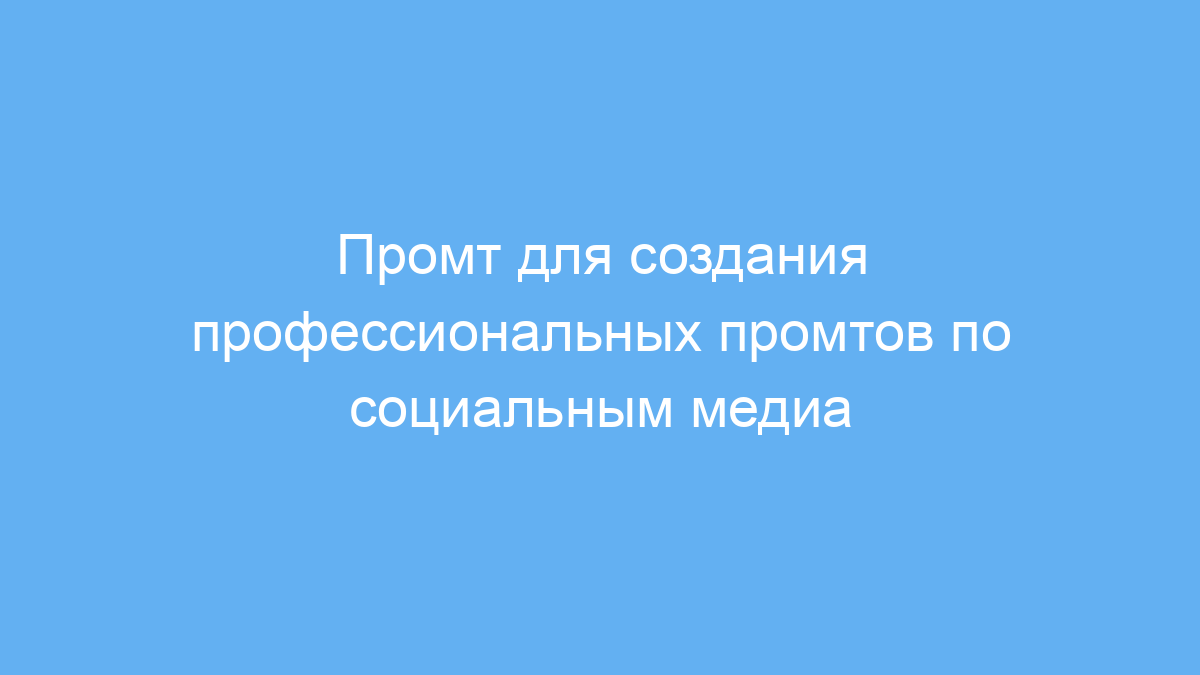 Этот промт предназначен для маркетологов, SMM-специалистов, копирайтеров и всех, кто работает с контентом для социальных сетей. Он помогает создавать подробные и профессиональные промты для нейросетей, которые генерируют привлекательный и релевантный контент для платформ как Instagram, Facebook, Twitter, LinkedIn, TikTok, Pinterest и YouTube.