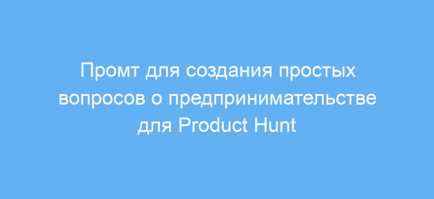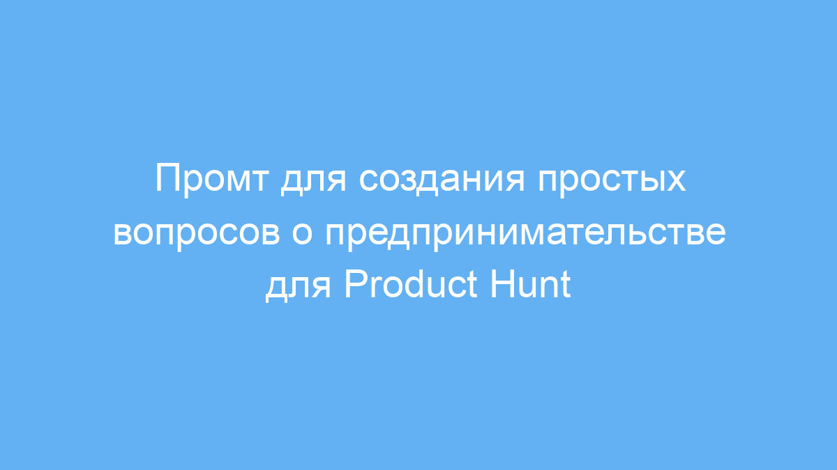 Этот промт предназначен для предпринимателей, маркетологов, стартаперов и создателей контента, которые хотят повысить вовлечённость аудитории на платформе Product Hunt в выходные дни. Он помогает быстро сформировать список из 10 лёгких и непринуждённых вопросов на разные темы бизнеса, что способствует живому общению и интересу к вашему продукту или проекту.