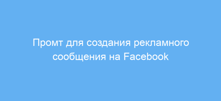 Использование данного промта позволяет быстро создавать эффективные рекламные сообщения, адаптированные под нужный продукт или услугу. Это значительно экономит время, повышает качество рекламных кампаний и помогает привлечь больше клиентов через Facebook.