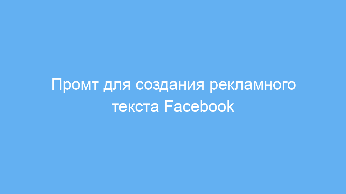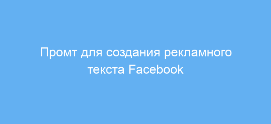 Использование этого промта экономит время на создании рекламных текстов для Facebook и помогает получить готовый, продающий текст с учётом особенностей продукта и целевой аудитории. Даже без опыта в рекламных кампаниях вы сможете эффективно привлечь внимание клиентов и повысить конверсию объявлений.