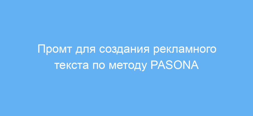 Промт решает проблему сложностей с созданием продающих текстов: он подсказывает, какие ключевые элементы включить, чтобы текст был последовательным, понятным и мотивировал к действию. Промт прост в использовании — нужно лишь указать название продукта, описание целевой аудитории и цель рекламы, после чего нейросеть сформирует готовый текст по шагам PASONA.