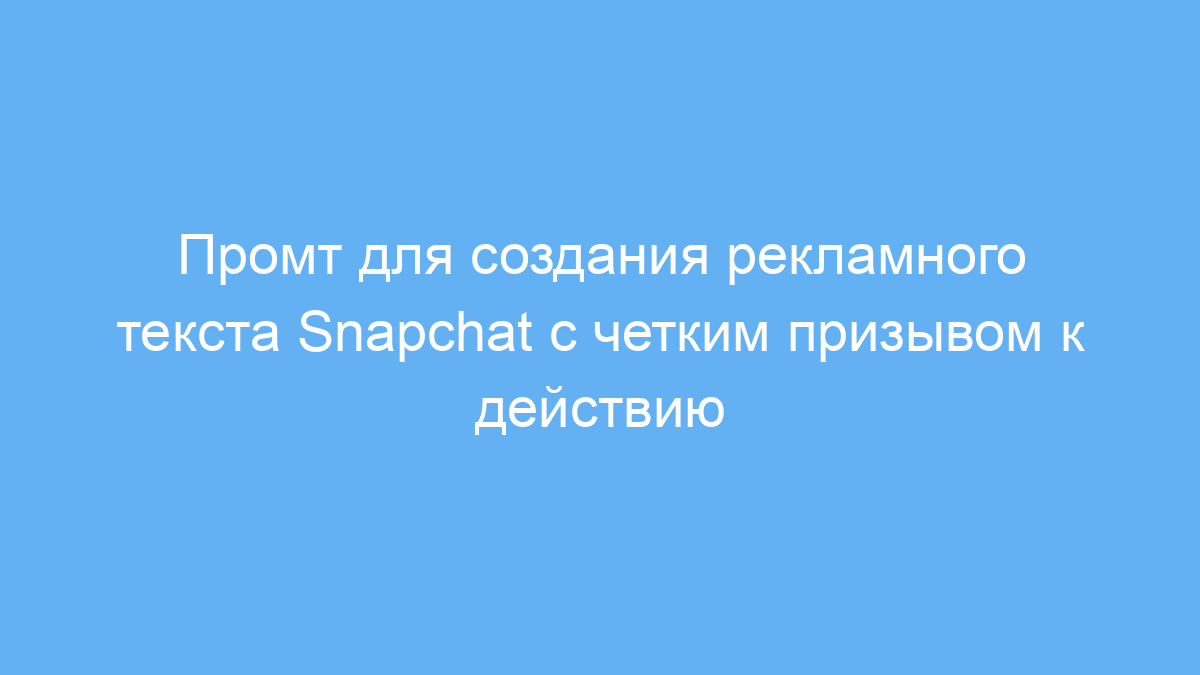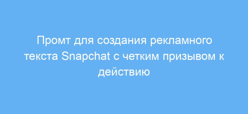 Использование данного промта помогает быстро получить качественный рекламный текст для Snapchat, экономит время при создании маркетинговых материалов и минимизирует усилия на формулировку призыва к действию. Это отличный инструмент как для начинающих, так и для опытных специалистов.