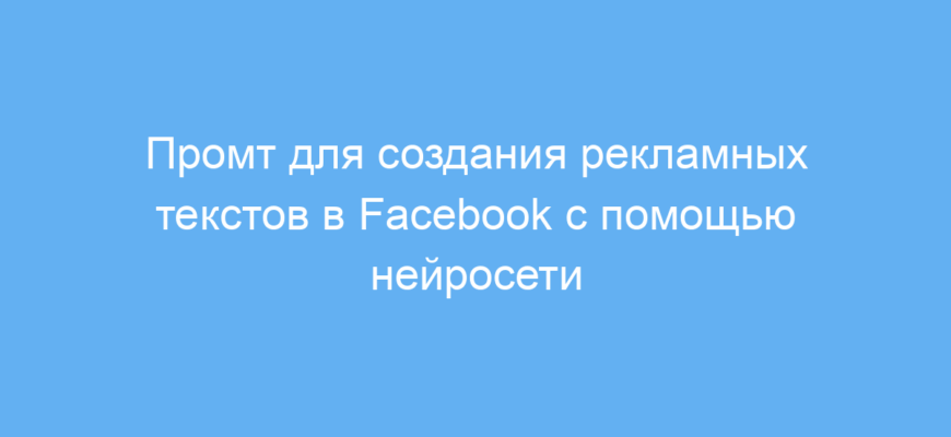 Данный промт значительно упрощает и ускоряет создание рекламного контента для Facebook, позволяя получить сразу несколько вариантов текста, логично структурированных для удобства выбора. Это помогает повысить качество рекламы и увеличить охват аудитории без необходимости тратить много времени на ручной подбор слов.