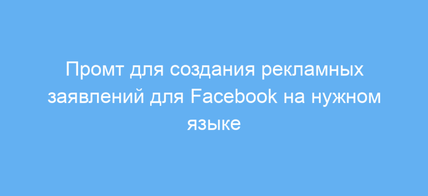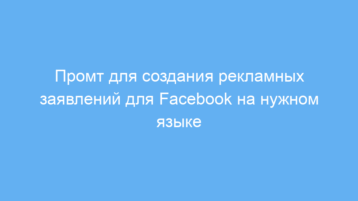 Этот промт предназначен для маркетологов, копирайтеров и специалистов по рекламе, которые хотят быстро получить готовые короткие утверждения для рекламы на Facebook. Он помогает создавать эффективные рекламные тексты, отвечающие требованиям длины и языку публикации. Такие тексты удобны для быстрого запуска рекламных кампаний и тестирования разных вариантов.
