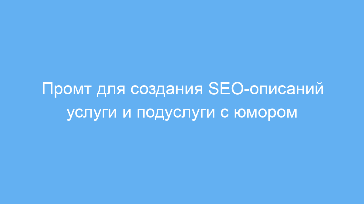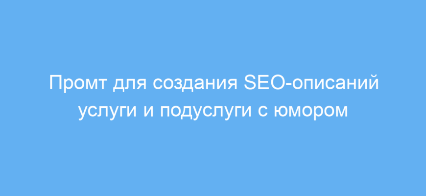 Этот промт лучше всего подходит для широкого спектра услуг и подуслуг, где важна краткость, оригинальность и SEO-оптимизация текста.