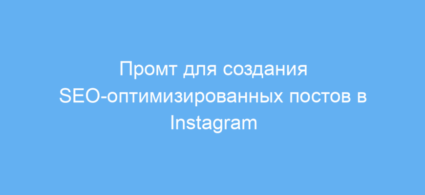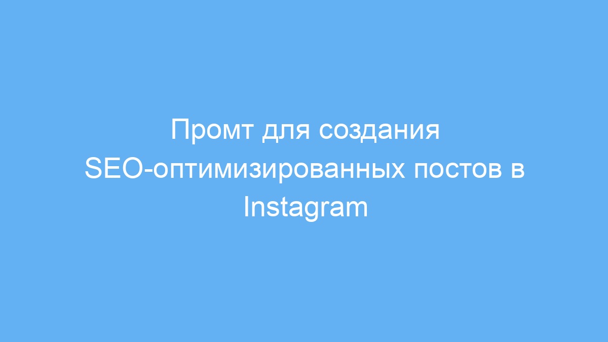 Этот промт существенно экономит время на подготовку контента для Instagram. Он помогает создавать привлекательные и поисково-оптимизированные посты с большим набором релевантных хэштегов. Вы получаете компактный и эффективный инструмент для продвижения вашего аккаунта в социальных сетях.