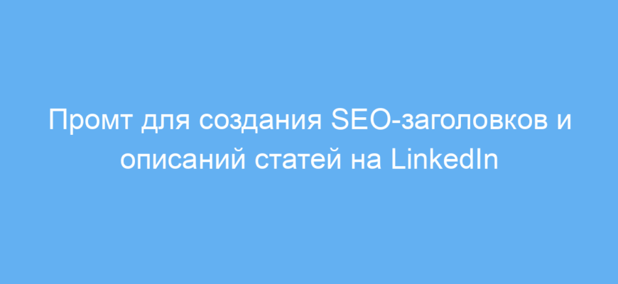 Этот промт предназначен для специалистов, маркетологов, контент-менеджеров и всех, кто занимается продвижением в LinkedIn или любой другой профессиональной социальной сети. С его помощью можно быстро подобрать актуальные темы для статей в заданной отрасли, создать SEO-оптимизированные заголовки и короткие описания для каждого материала.