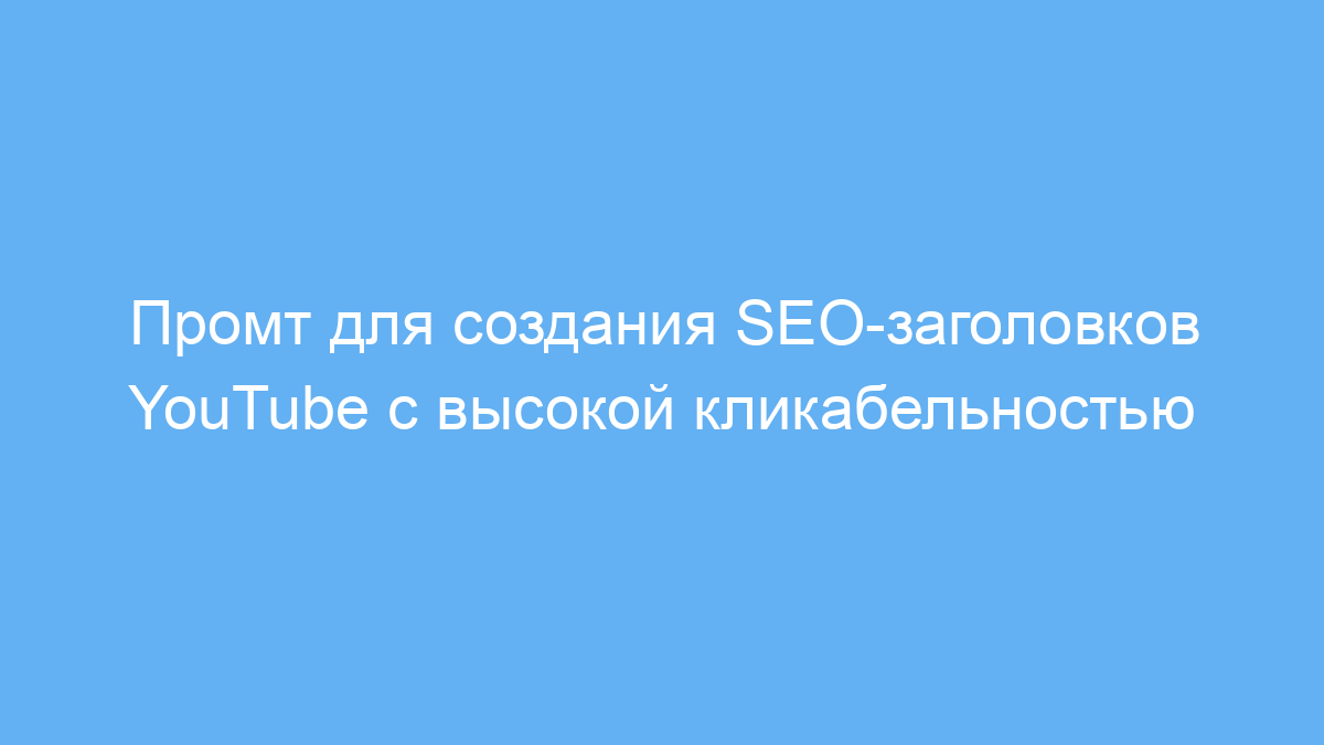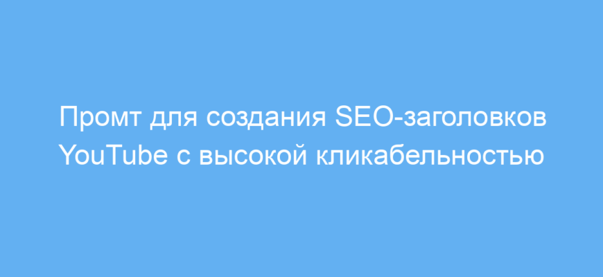 Использование промта экономит время при поиске эффективных заголовков для видео. Он помогает повысить кликабельность благодаря грамотному применению ключевых SEO-слов и разнообразным подходам. Таким образом, вы быстрее привлечёте нужную аудиторию и увеличите просмотры.
