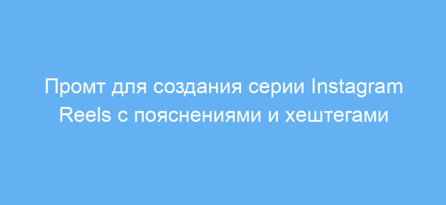 Этот промт облегчает создание качественного и структурированного контента для Instagram Reels. Он помогает быстро подготовить серию видеороликов с понятными объяснениями и релевантными хештегами, что улучшает взаимодействие с аудиторией и повышает охват публикаций.