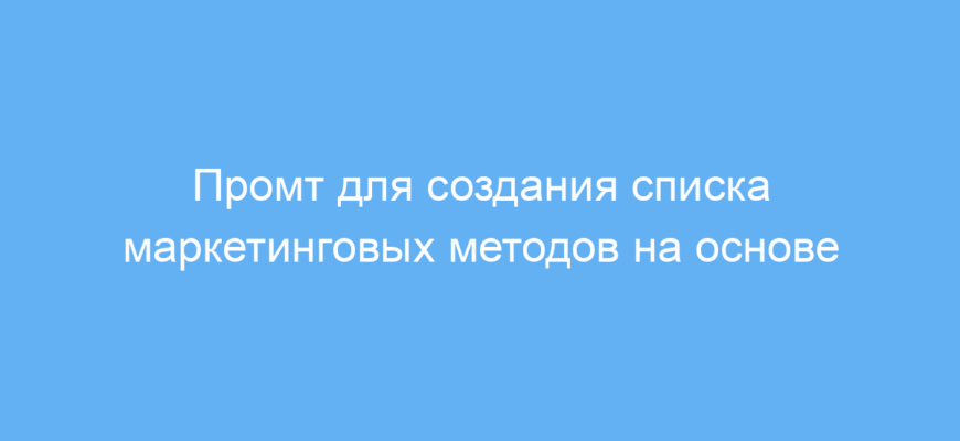 Ниже приведен пример того, как нейросеть может ответить на такой промт, сформировав список маркетинговых методов с коротким описанием и рекомендациями по внедрению: