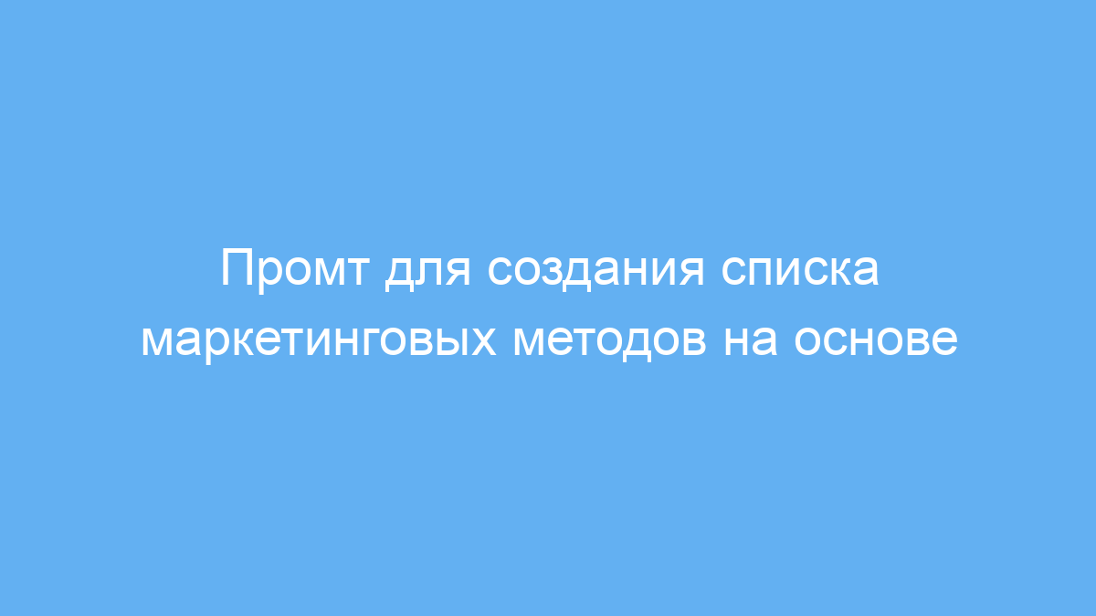 - В дальнейшем можно адаптировать промт под другие отрасли, заменив «маркетинговые методы» на нужную сферу деятельности.