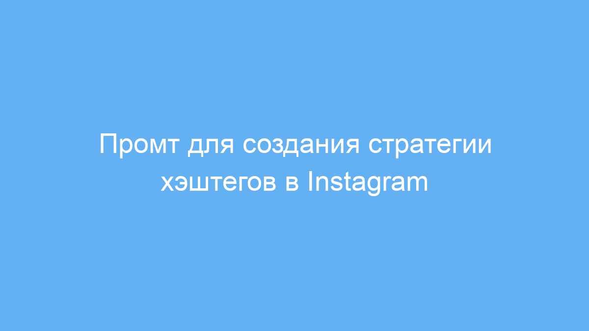 Этот промт предназначен для маркетологов, SMM-специалистов и владельцев бизнеса, которым нужно эффективно продвигать свой бренд в Instagram. С помощью него можно быстро создать оптимальную стратегию хэштегов, которая повысит узнаваемость и вовлечённость целевой аудитории.