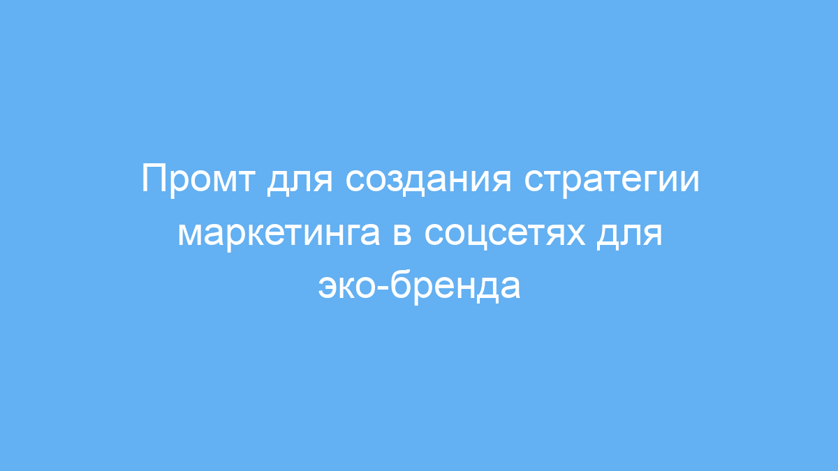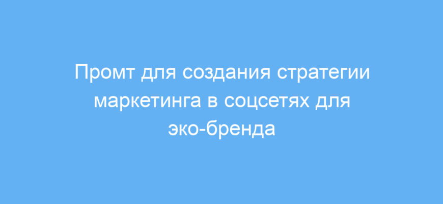 Работает промт просто: вы задаёте нейросети конкретный запрос о создании маркетинговой стратегии для экологичного бренда, и она генерирует план с учётом современных трендов и лучших практик в соцсетях. Таким образом, вы получаете готовый текст, который можно использовать как основу для дальнейшей работы.