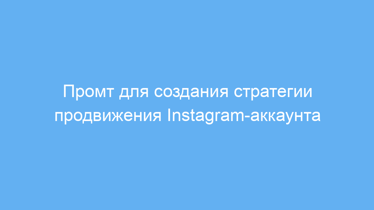 Данный промт позволяет легко и быстро структурировать вводные данные для построения эффективной маркетинговой стратегии в Instagram. Он помогает избежать неопределенности, сэкономить время на анализе и планировании, а также повысить вероятность роста и вовлечения аудитории.