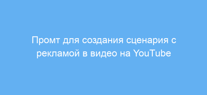 Работает промт просто: вы вводите описание вашего видеоблога и продукта, и нейросеть формирует структуру и текст сценария, который плавно связывает содержание видео с рекламным сообщением. Это экономит время и помогает сделать рекламу естественной и полезной для зрителей.