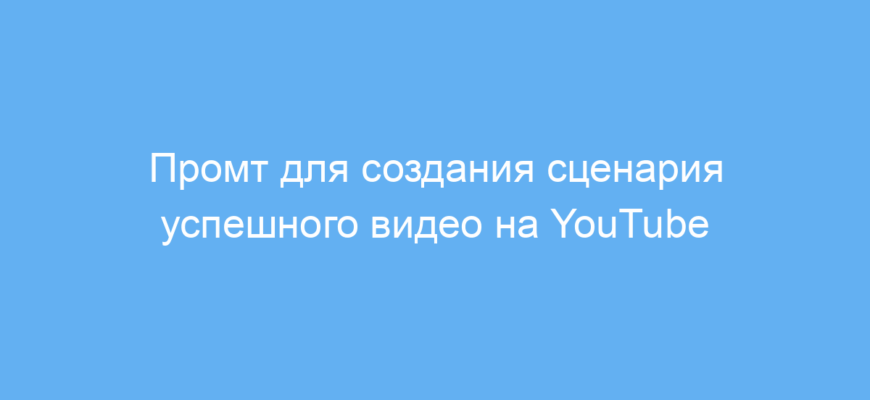 - Промт ориентирован на создание сценария именно для формата YouTube, его применение для других платформ может требовать доработки.