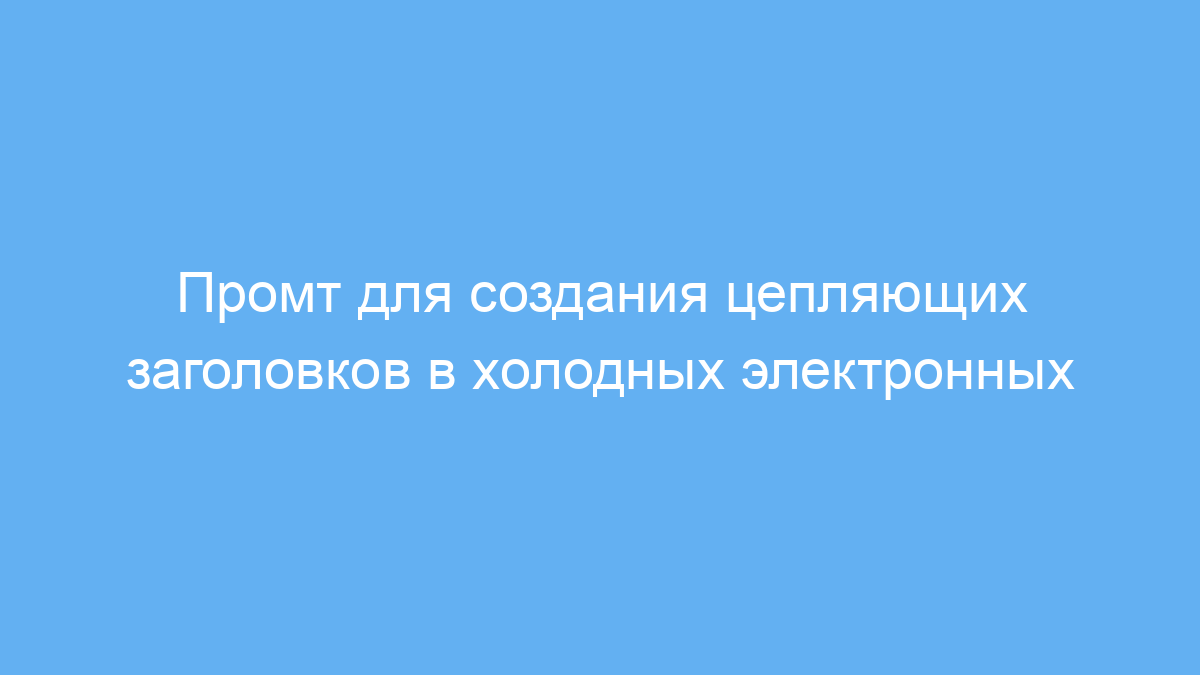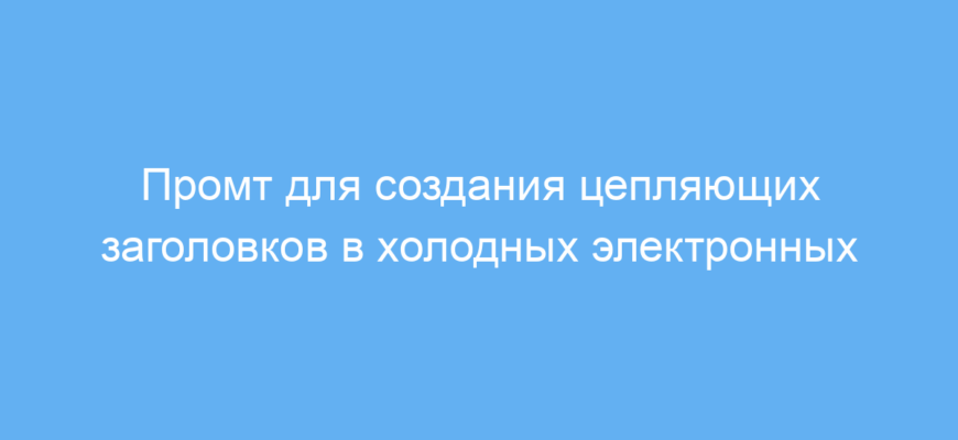 Этот промт предназначен для маркетологов, копирайтеров и предпринимателей, которые хотят быстро создавать эффективные заголовки для холодных электронных писем. Он помогает получить качественные варианты заголовков, которые заинтересуют вашу целевую аудиторию и повысит открываемость писем.