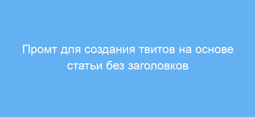 Использование данного промта экономит время на подготовку и структурирование контента для Твиттера. Он помогает адаптировать материал под особенности платформы — создавать несколько свежих и связанных по смыслу твитов, в том числе с полноценным пониманием темы без отображения заголовка статья.