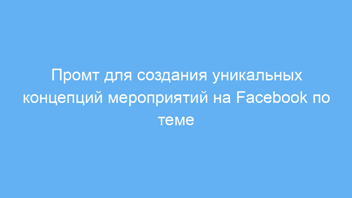 Работает промт просто: вы указываете тему или бренд, и нейросеть формулирует десять уникальных идей для мероприятий на Facebook, а также примеры заголовков и описаний, которые заинтересуют пользователей и помогут увеличить охват.