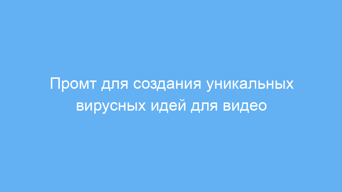 Использование данного промта позволяет быстро и эффективно создавать по-настоящему уникальные и запоминающиеся идеи для видео, которые выделят вас среди конкурентов. Он экономит массу времени и нервов, заменяя долгие поиски и мозговые штурмы быстрым генератором концепций с профессиональным подходом.