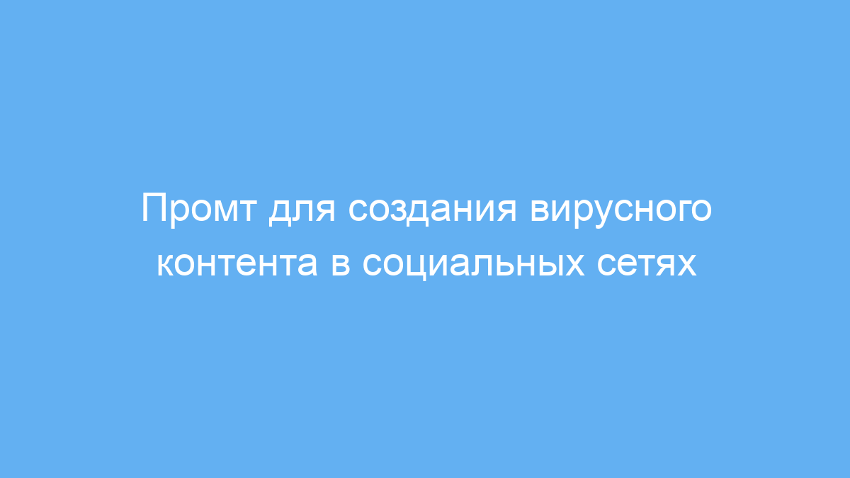 Этот промт создан для маркетологов, SMM-специалистов, блогеров и всех, кто хочет быстро и эффективно создавать вирусные публикации в соцсетях. Он помогает находить актуальные темы, формировать креативные идеи и увеличивать вовлечённость аудитории. Основная задача — упростить процесс создания контента, который привлекает внимание и вызывает активный интерес подписчиков.