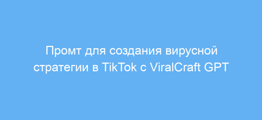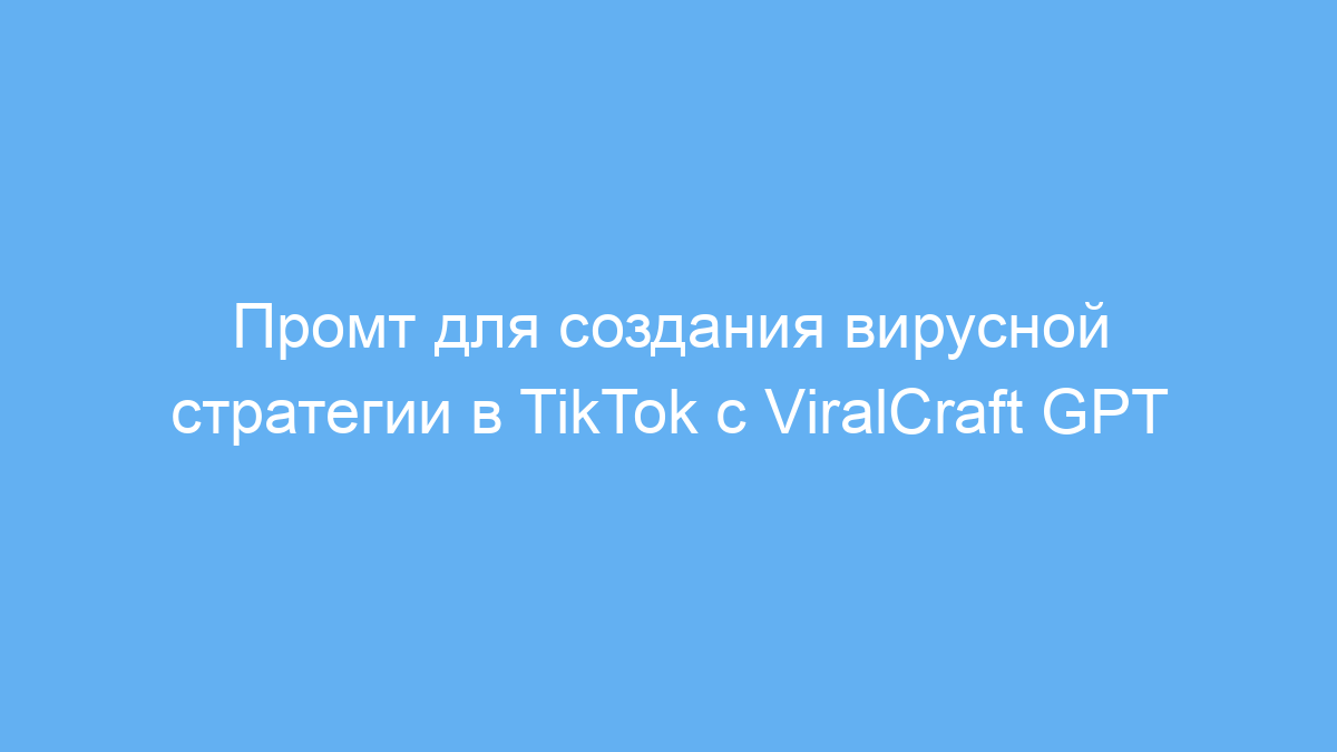 Этот промт предназначен для маркетологов, SMM-специалистов, блогеров и предпринимателей, которые хотят добиться вирусного успеха в TikTok. Его основная задача — помочь создать эффективную и актуальную стратегию продвижения в социальной сети, используя возможности искусственного интеллекта.