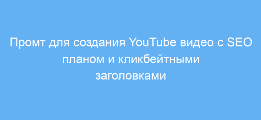 Этот промт предназначен для авторов YouTube контента, маркетологов и SEO-специалистов, которые хотят создавать эффективные видеостратегии с высокой кликабельностью и отличной поисковой оптимизацией. Если вы хотите быстро находить идеи для видео, понимать, что лучше всего привлечёт аудиторию, и одновременно иметь грамотный SEO-план, этот промт поможет вам сэкономить время и силы.