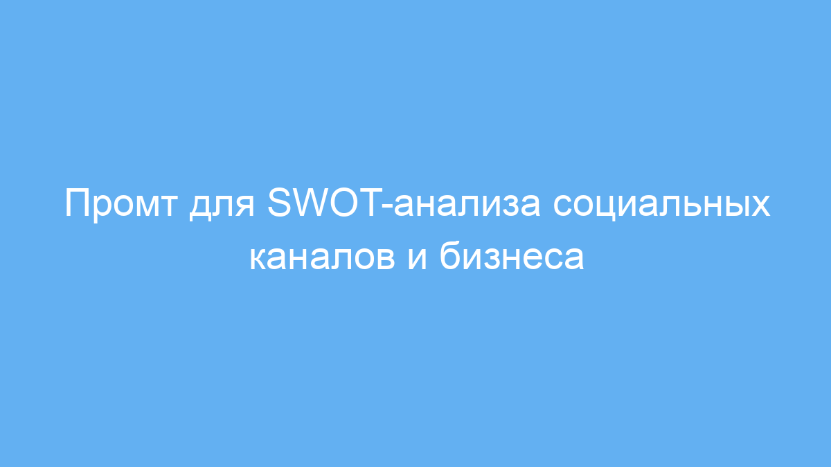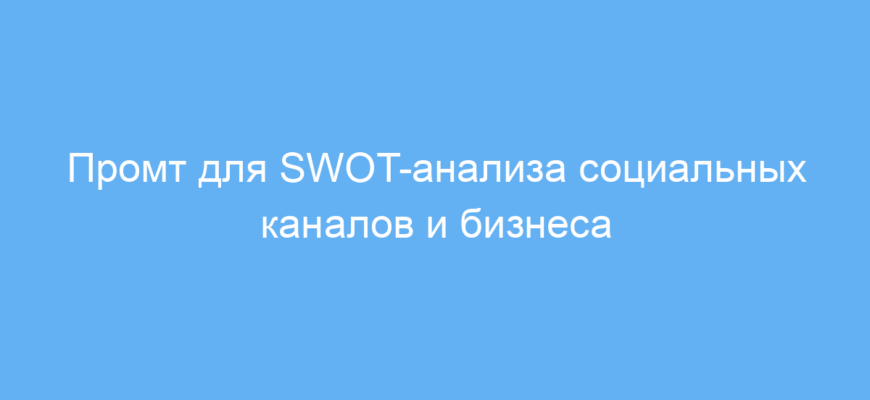 Этот промт создан для специалистов по социальным медиа, маркетологов и владельцев бизнеса, которые хотят провести SWOT-анализ своих социальных каналов или бизнеса. Он помогает выявить сильные и слабые стороны, а также возможности и угрозы с учётом последних трендов отрасли и особенностей целевой аудитории. Такой анализ улучшит стратегию продвижения и повысит эффективность работы с клиентами.