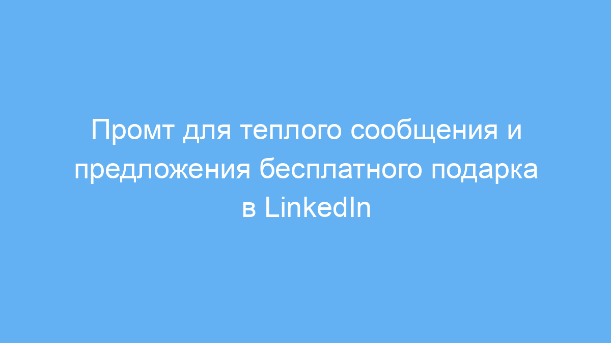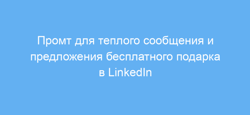 Этот промт создан для людей и компаний, которые хотят налаживать связи в LinkedIn с новыми контактами. Он помогает быстро и без лишних усилий составить дружелюбное сообщение, которое приглашает к сотрудничеству и одновременно предлагает бесплатный подарок. Такой подход решает проблему «холодных» или формальных писем, которые часто остаются без ответа.