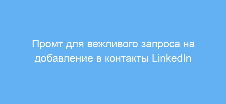 Данный промт существенно упрощает задачу создания корректных и уважительных сообщений при запросе на добавление в LinkedIn. Он экономит ваше время и помогает поддерживать правильный тон общения, что важнее для установления новых профессиональных связей.