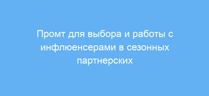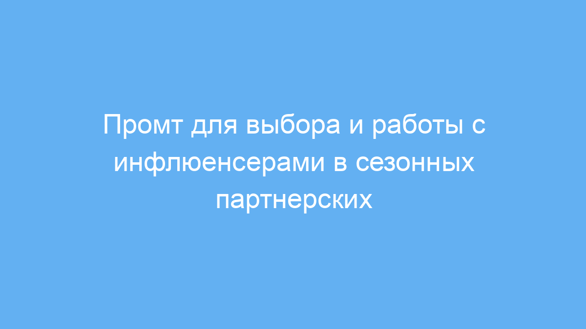 Этот промт позволяет быстро и структурированно получить рекомендации по выбору целевой аудитории и инфлюенсеров для сезонных кампаний, а также помогает построить эффективное сотрудничество с партнерами. Он экономит время на разработку стратегии и повышает вероятность максимального финансового успеха.