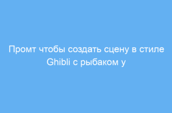 Промт чтобы создать сцену в стиле Ghibli с рыбаком у озера ночью