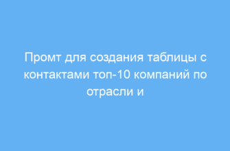 Промт для создания таблицы с контактами топ-10 компаний по отрасли и месту