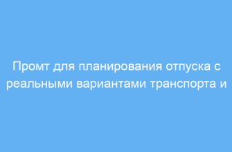 Промт для планирования отпуска с реальными вариантами транспорта и отеля