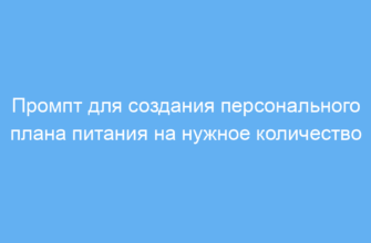 Промт для создания персонального плана питания по калориям и макронутриентам