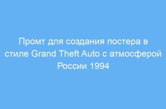 Промт для создания постера в стиле Grand Theft Auto с атмосферой России 1994