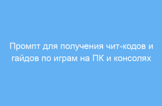 Промпт для получения чит-кодов и гайдов по играм на ПК и консолях